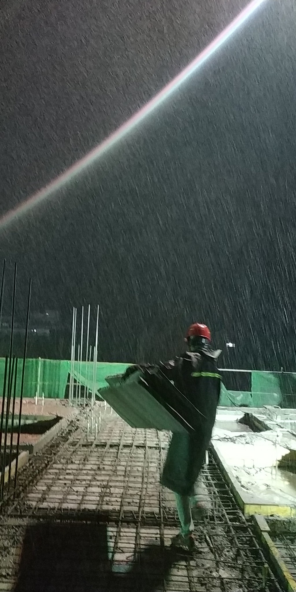 11月7日鎮(zhèn)雄縣第二人民醫(yī)院項(xiàng)目迎來了2018年的第一場(chǎng)雪,這是一個(gè)雷電、雨、雪交加的晚上,給人的感覺身處在一個(gè)偌大的冰窖里,我窩在被窩里抱著火爐看電視。然而在如此寒冷上廁所都需要勇氣的夜晚,為了確保完成11月30日節(jié)點(diǎn)目標(biāo),我們的項(xiàng)目副經(jīng)理成俊、施工員胡杰盛和民工兄弟們,冒著雷雨雪依然堅(jiān)守在澆筑混凝土的第一線。在寒冷的冬季,如何保證澆筑的混凝土質(zhì)量是一大難題,在質(zhì)量總監(jiān)劉榮軍的指導(dǎo)下對(duì)混凝土成品采取防凍防寒措施,第一層采用薄膜覆蓋、第二層用土工布鋪蓋、第三層用防水黑棉鋪蓋、第四層用土工布覆蓋壓實(shí),澆筑完后用兩盞三千瓦燈對(duì)射覆蓋。