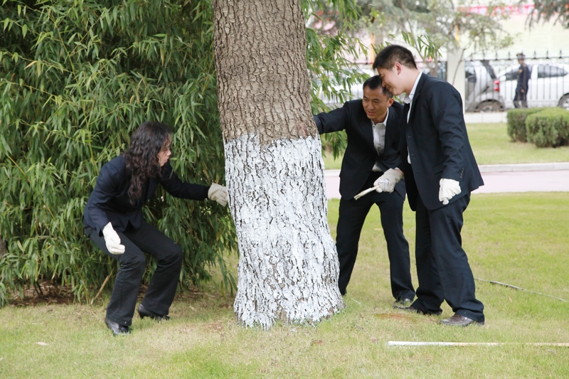2012年11月7日下午,物業(yè)管理公司全體員工為公司機關(guān)的綠化樹刷石灰水,刷好的樹木遠(yuǎn)遠(yuǎn)看去,整齊而又漂亮。物業(yè)管理公司將在正常開展工作的情況下,對公司機關(guān)及小團山生活區(qū)的綠化樹進行粉刷行動,通過這次行動來美化職工生活區(qū),喜迎黨的十八大勝利召開。
